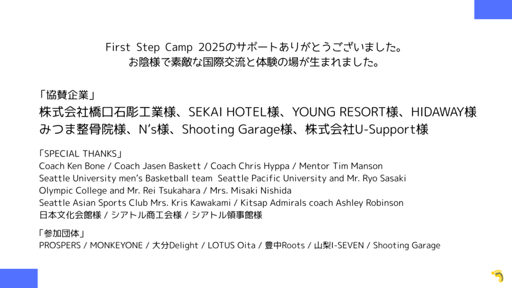 西田コーチが2024年に引き続き「First Step Camp」初めの一歩キャンプのサポートを行いました。
