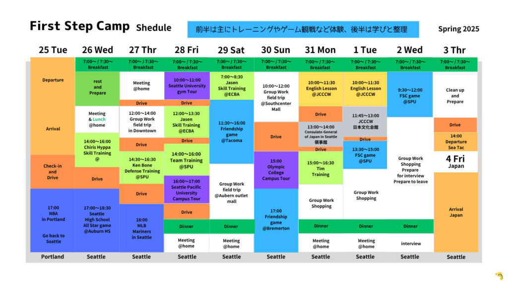 総勢29名が参加してくれた今回は、過去にプロ選手としてシアトルキャンプに参加された早川コーチ、伴コーチ、ヨネコーチ、コウキコーチも参加された事でキャンプとしても新しい時代の幕開けのような一歩となりました。